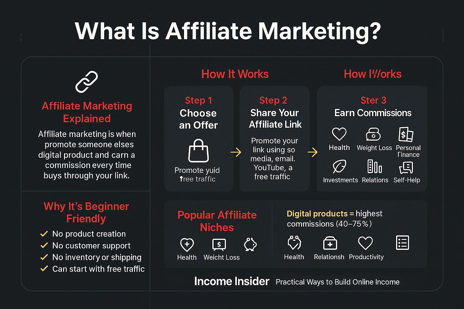 Welcome back Income Insider - today you’ll get a simple cheat sheet explaining exactly how affiliate marketing works, a breakdown from ClickBank on using Pinterest to promote offers, and in the Q&A I share the best place to find high-quality affiliate programs to start promoting right away.